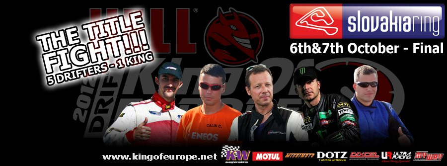Neďaleko Orechovej Potône na SlovakiaRing-u sa v dňoch 5.-7.10 2012 budú odohrávať tie najtvrdšie a najcennejšie boje tejto drifterskej sezóny. Bude sa pretekať o titul “KING OF EUROPE 2012” !