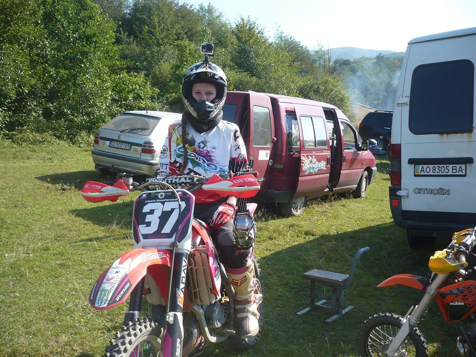 Cez minulý víkend sme sa vybrali na Šampionát Zakarpatskej oblasti v Ukrajine. Do mestečka Velykyi Bereznyi, kde sa to všetko odohrávalo sme dorazili už v sobotu. Od 14tej hodiny bola možná registrácia. Keďže tam dievčatá nemajú vlastnú kategóriu, zapísala som sa medzi chlapcov do kategórie MX 85. O 17:30 sme mali možnosť absolvovať oboznamovací tréning, ktorý trval 20. minút. Trať bola krásne upravená, poliata a vyrovnaná. Jazdilo sa mi super.