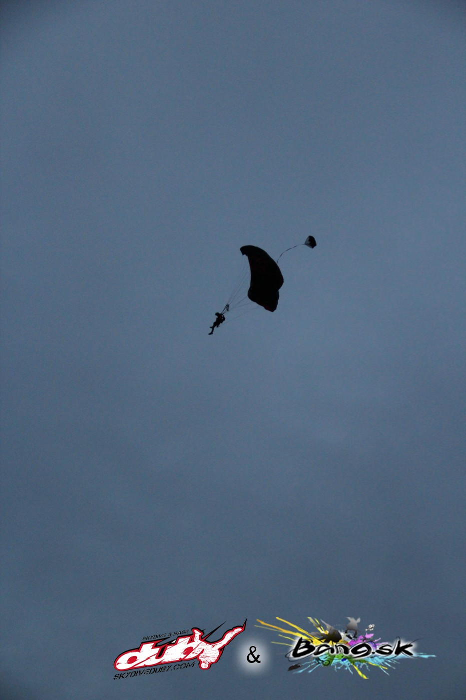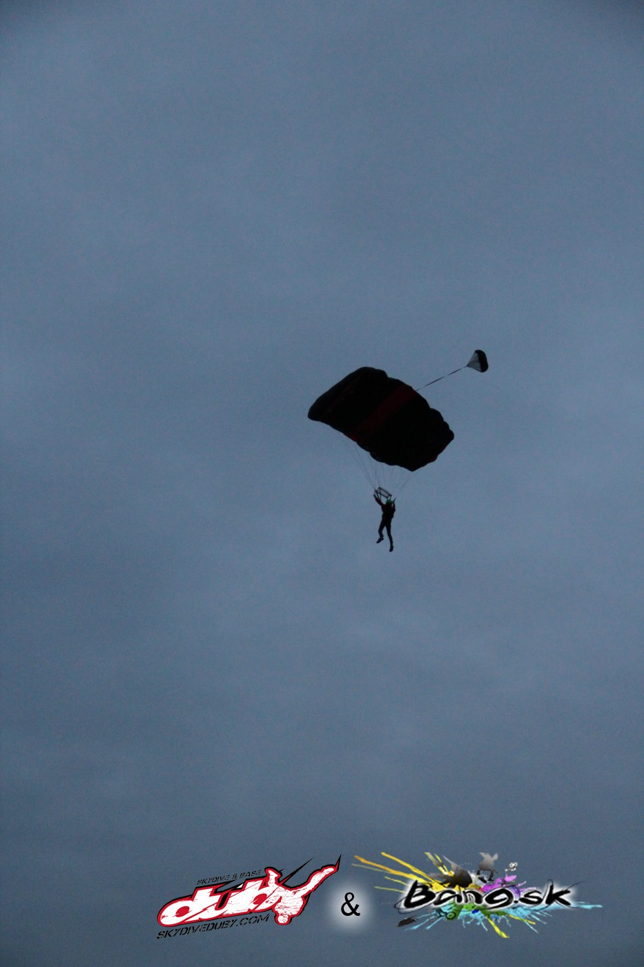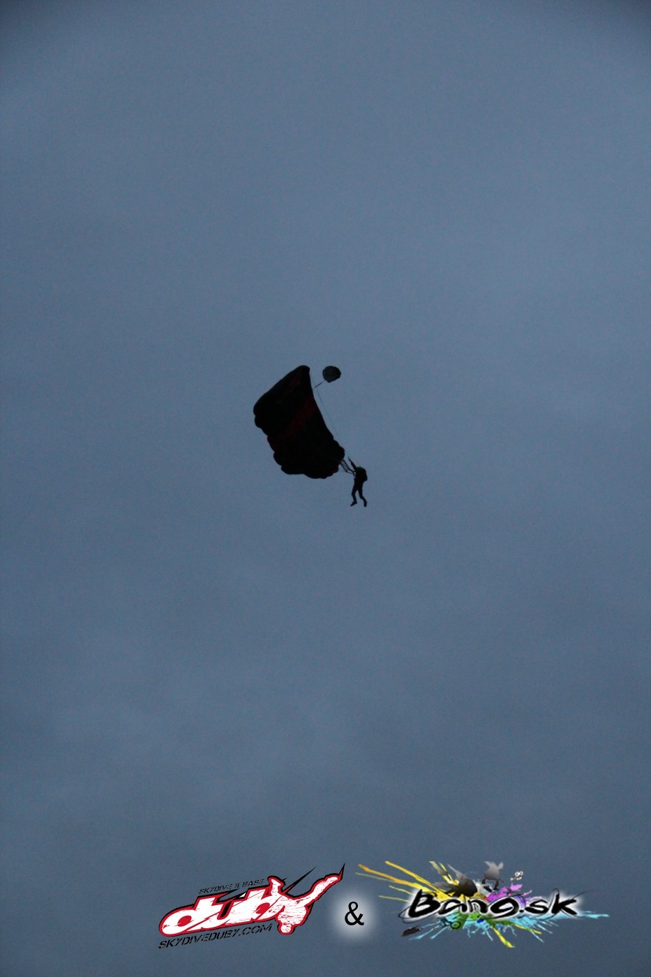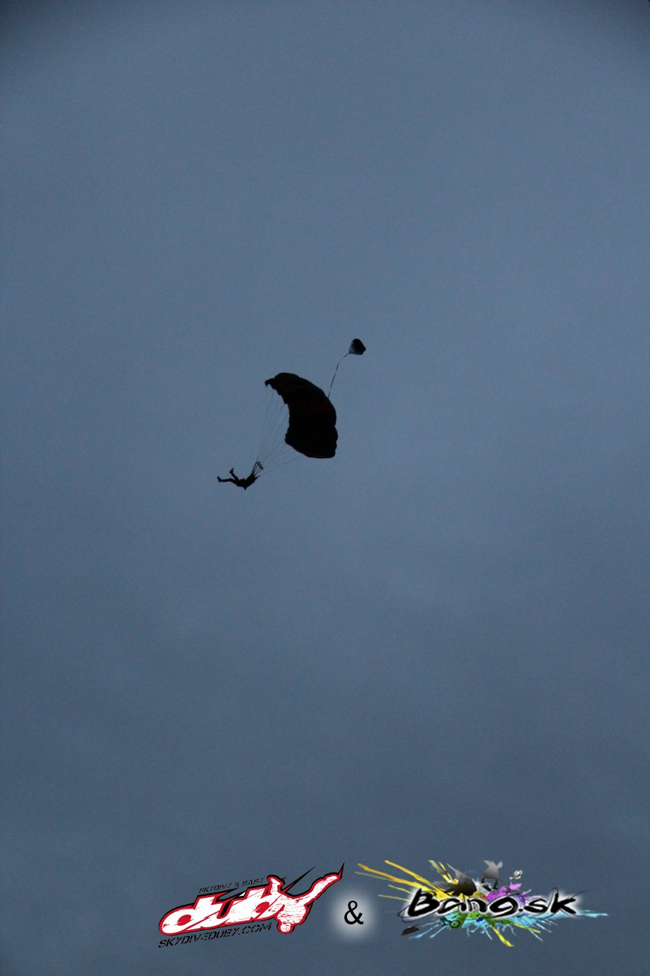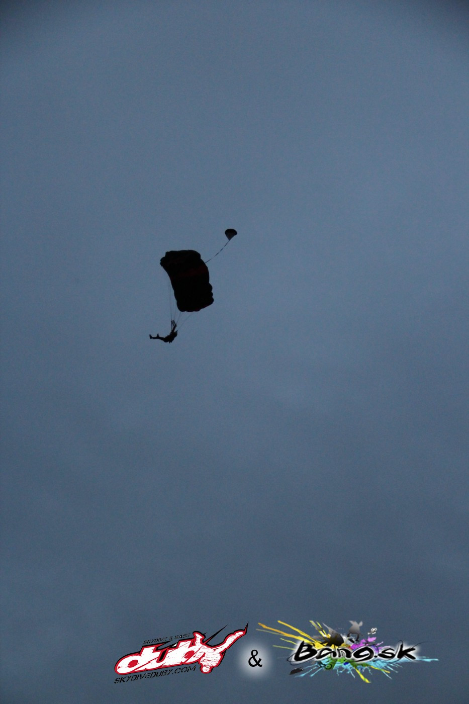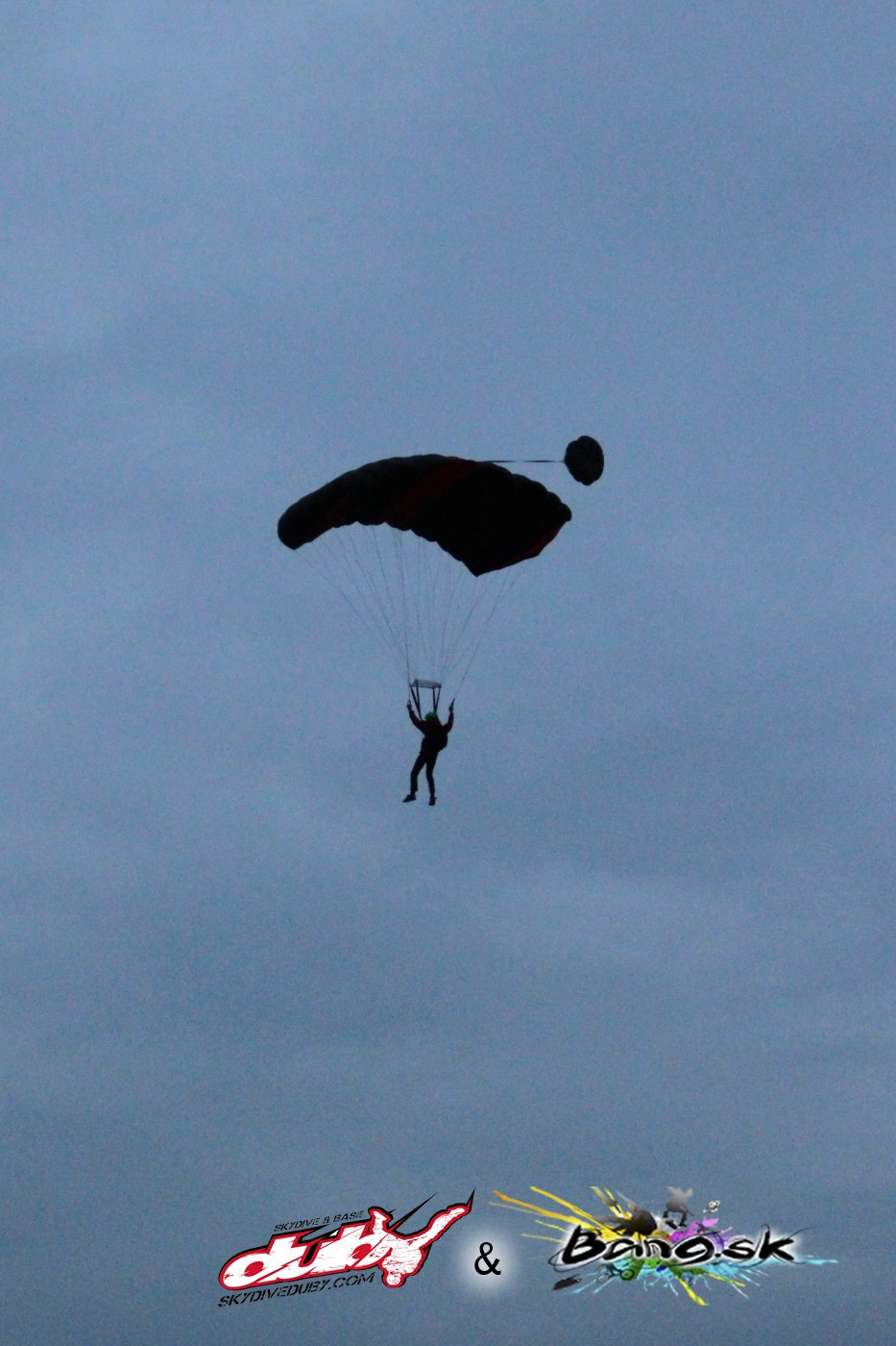 Prichádzam na miesto určenia prvý, akurát sa stihnem vydýchať a už vystupuje z auta jeden nemenovaný slovenský profesionálny base-jumper v sprievode šarmantnej hnedovlásky. Onedlho sú už na mieste aj ľudia z Bang.sk, Wrc Hsp felicia s riders posádkou a Angus. Krátky pokec, nachystanie techniky a už lezieme hore 80 metrovú vežu v zostave Roman, René, Bodkins, Kučo a ja (ncap). Každým poschodím sa ľudia dole zdali menší a menší ...
