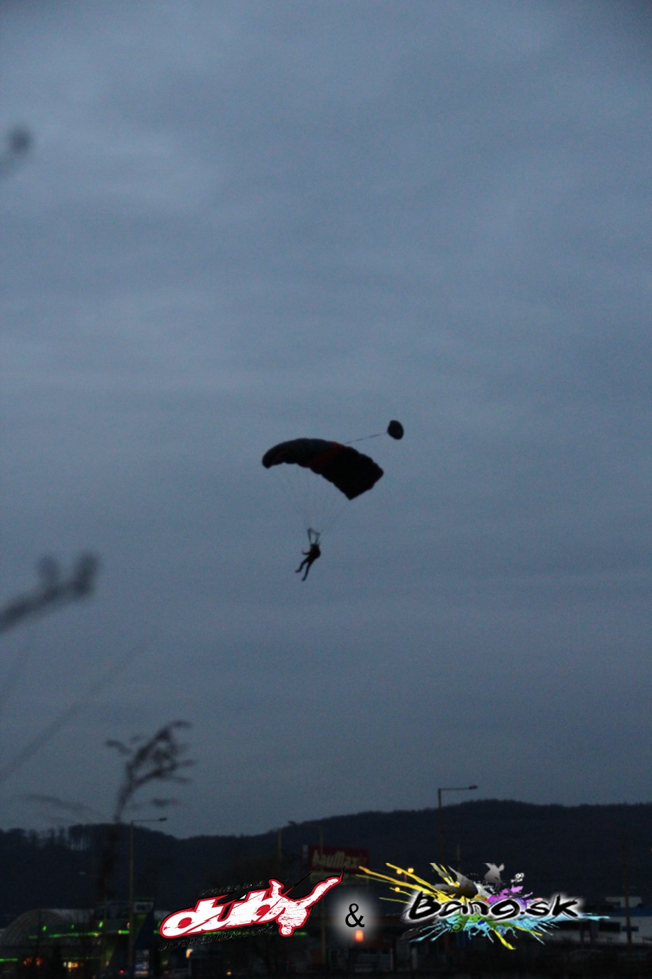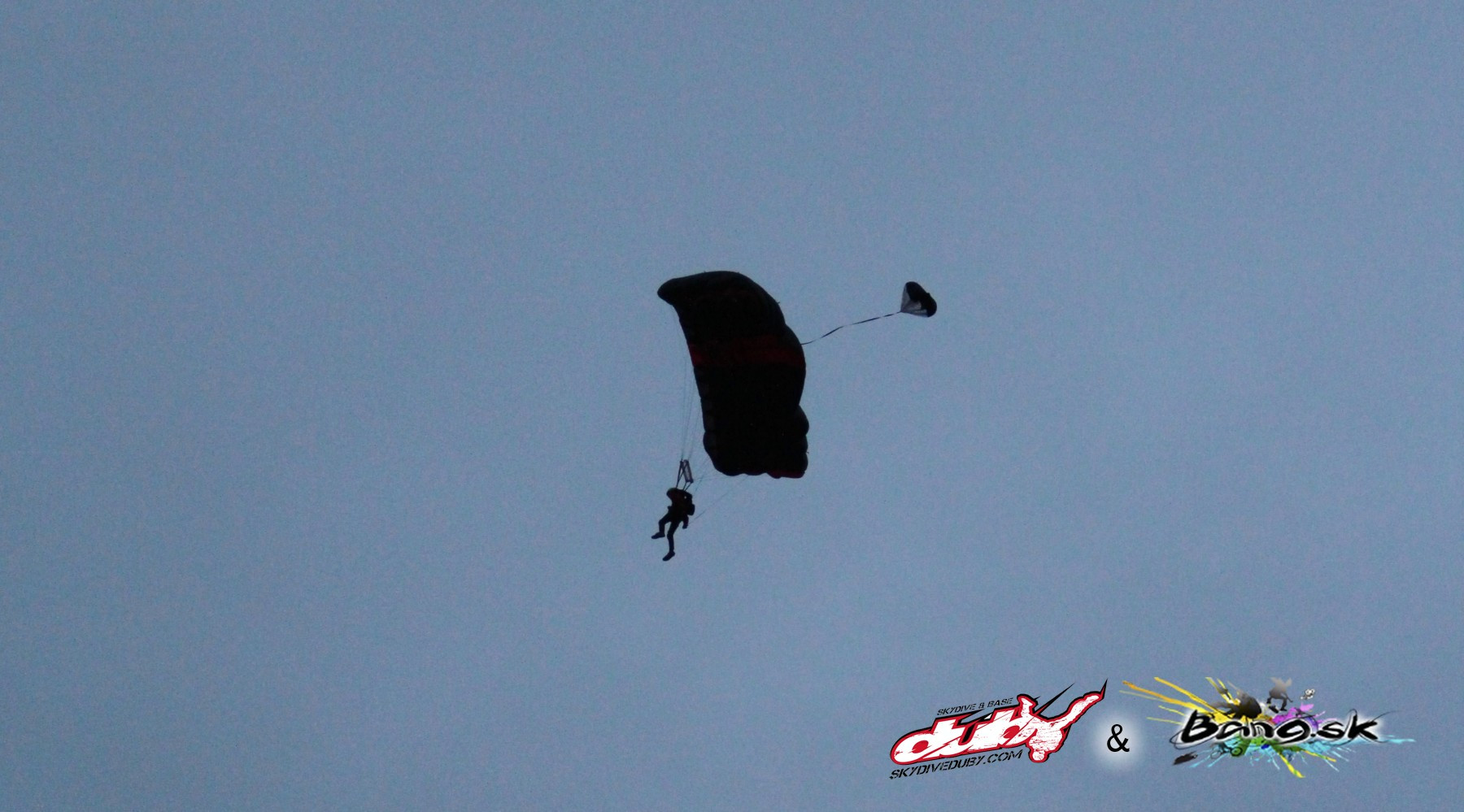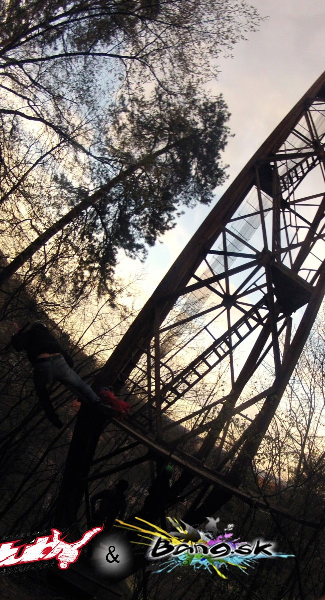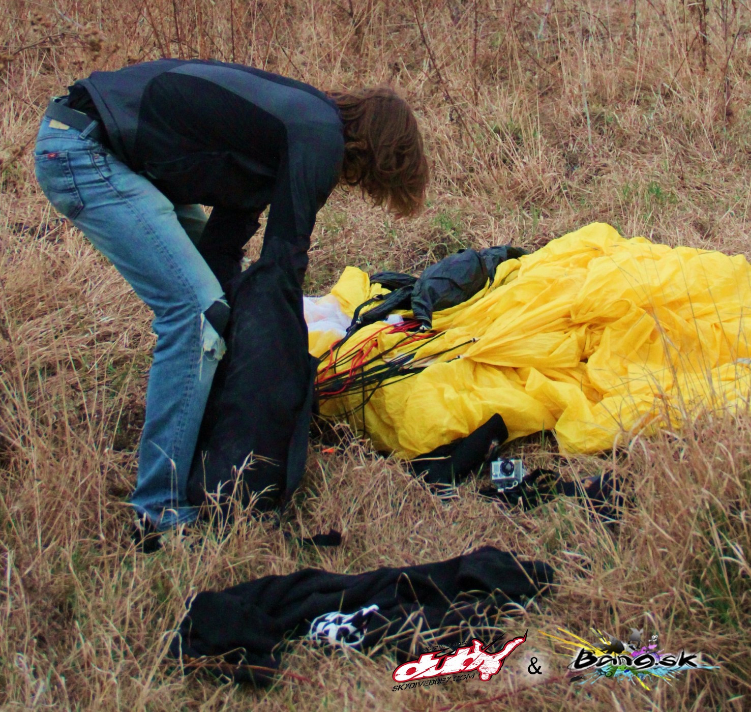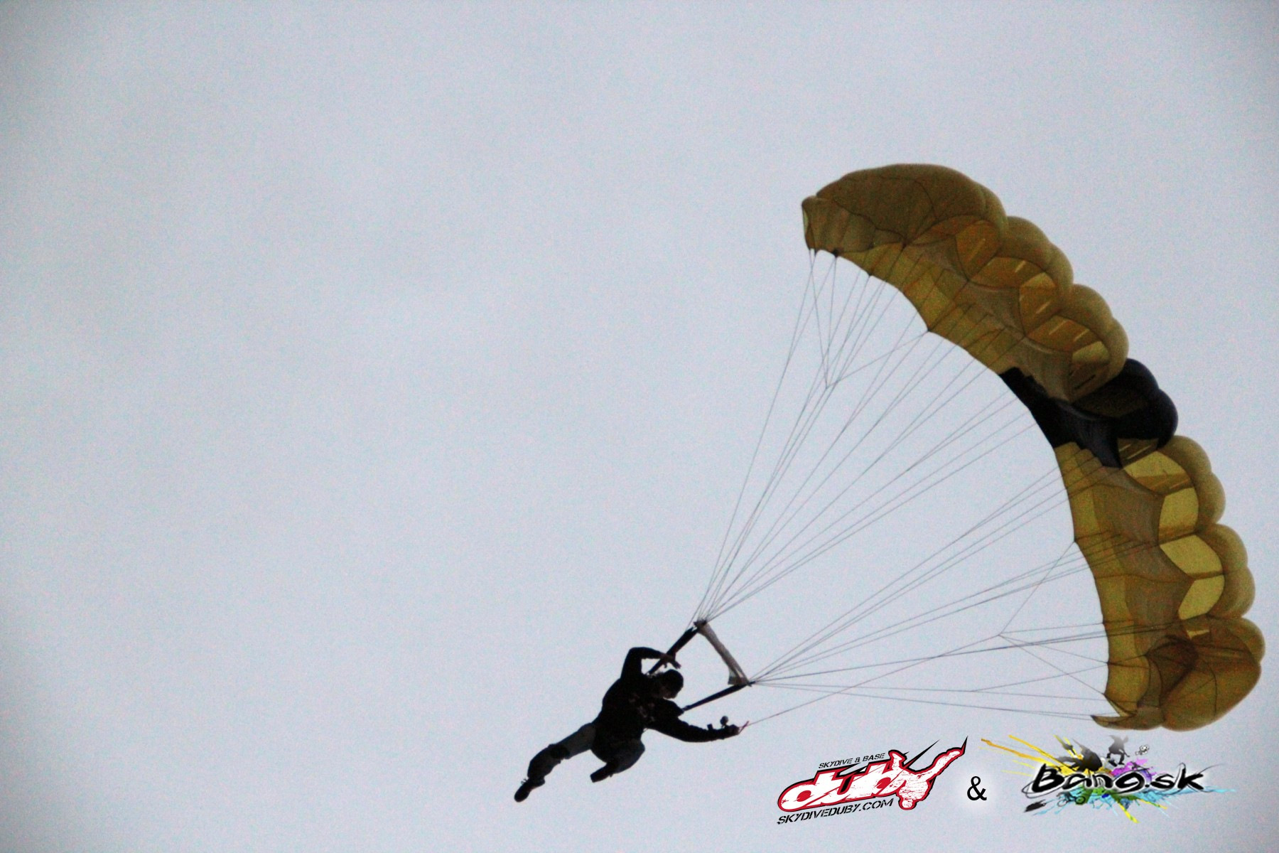 Prichádzam na miesto určenia prvý, akurát sa stihnem vydýchať a už vystupuje z auta jeden nemenovaný slovenský profesionálny base-jumper v sprievode šarmantnej hnedovlásky. Onedlho sú už na mieste aj ľudia z Bang.sk, Wrc Hsp felicia s riders posádkou a Angus. Krátky pokec, nachystanie techniky a už lezieme hore 80 metrovú vežu v zostave Roman, René, Bodkins, Kučo a ja (ncap). Každým poschodím sa ľudia dole zdali menší a menší ...