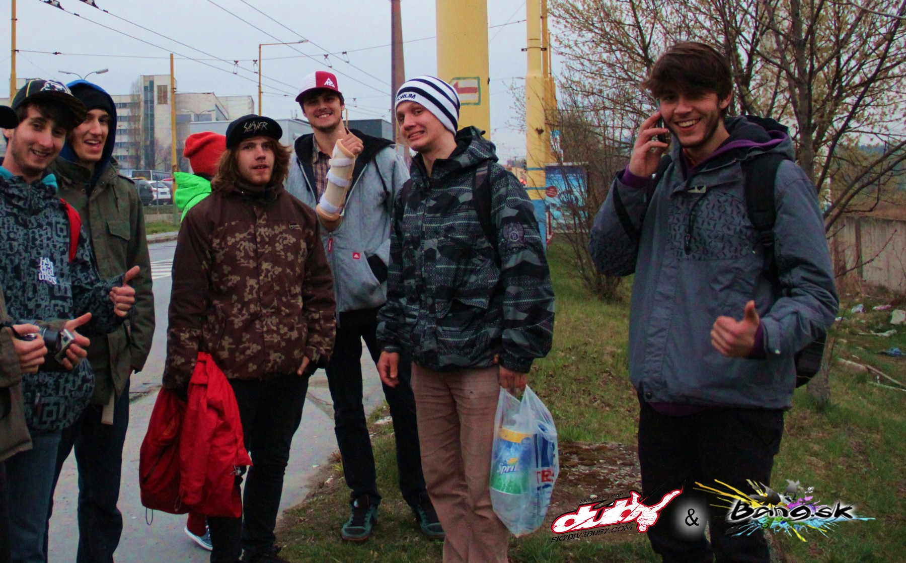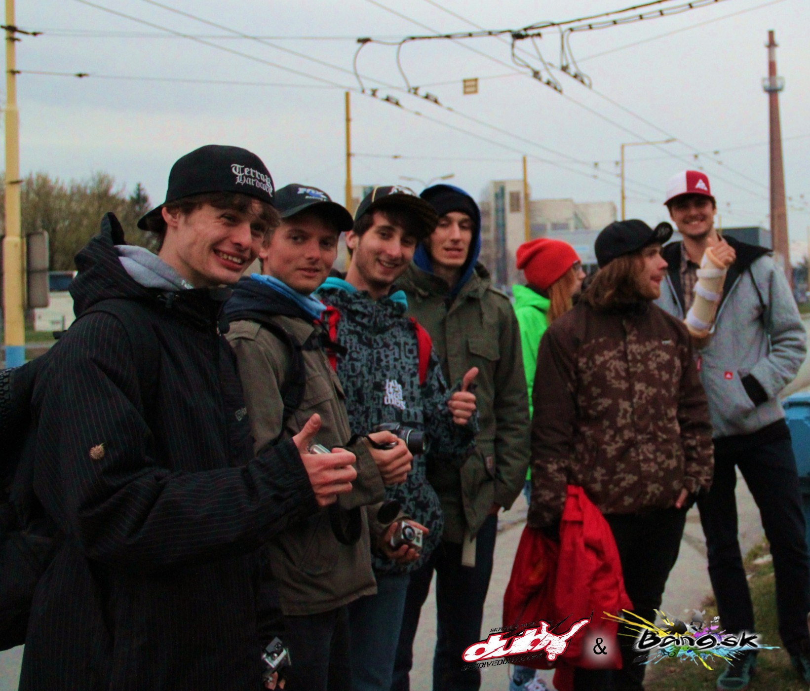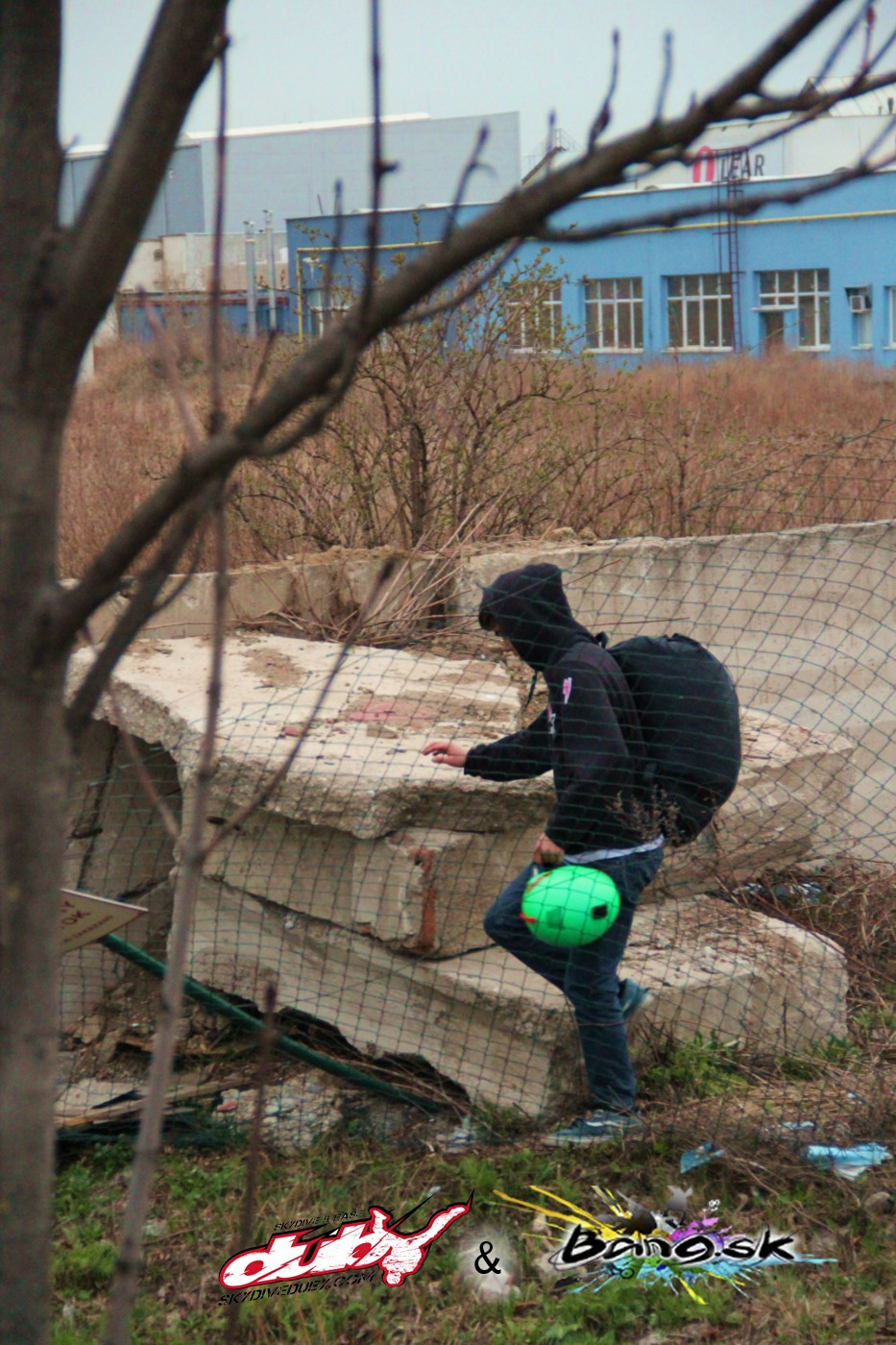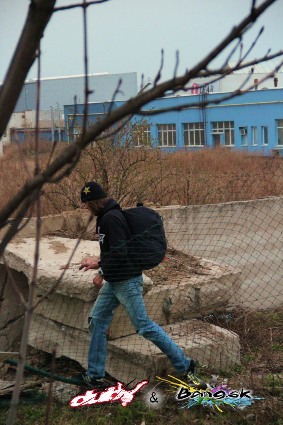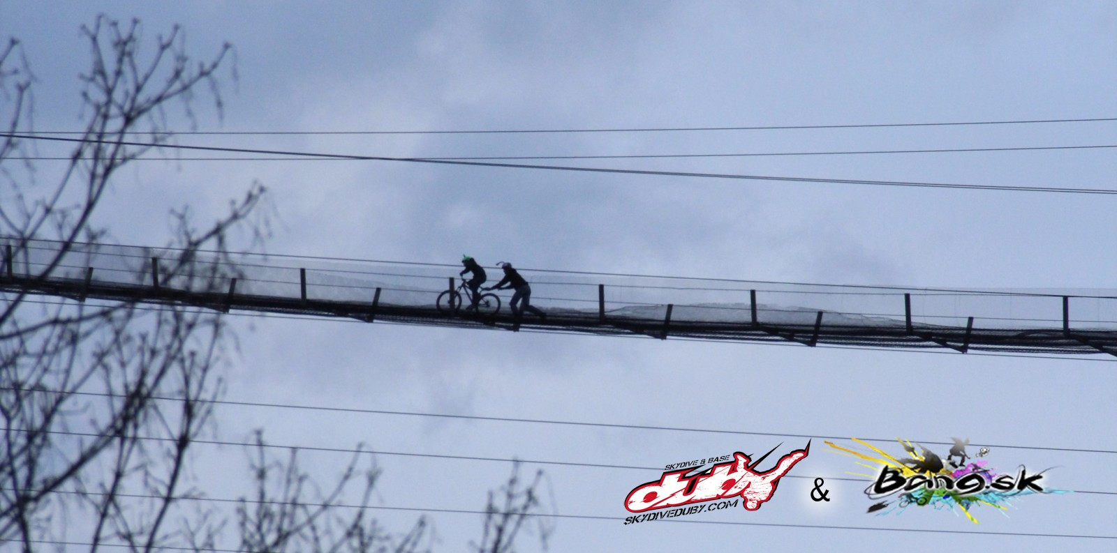 Bike je už hore, keď sa začnú ozývať hlášky " ale chlapci, nemusíme predsa tlačiť na pílu", "Roman, ideš prvý" ... ten samozrejme nerozmýšľal, troška napravil pletivo a naskočil tam ako správny freerider, nasledoval René, za ním Kučo ... s Bodkinsom sme sa iba závistlivo pozerali na bandu retardov skáčucich s bikom 100 metrov nad dvojprúdovkou v Čermeli. Po pár minútach balíme, zlaňujeme bike dole, keď sa o poschodie vyššie ozve: " aha cops!". Samozrejme mali sme spoločnosť chlupatých ... Dole schádzam ako prvý, keď sa pozriem na zelených, tí si iba vymieňajú pohoršené pohľady... Nasledovalo zopár otázok či nám nejebe, ale nakoniec sme odišli iba s ústnym napomenutím, kiežby vedeli čo sa bude diať o necelých 12 hodín na komíne v Prešove ... Myslím, že viac nie je potrebné písať, video a fotky hovoria za všetko. Peace.