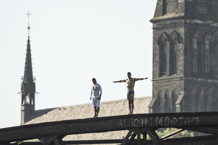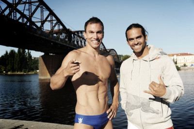 Na jednom z pražských mostov sa stretli dvaja TOP cliff diveri Orlando Duque a Michal Navrátil.