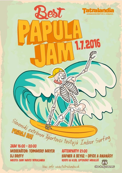 Úspenšní slovenskí jazdci extrémnych športov sa stretnú tento piatok (1.7. 2016) na BEST PAPULA JAM, kde otestujú svoje schopnosti v indoor surfingu, na len nedávno otvorenej umelej vlne. ...majstri rôznych športových disciplín si niečo podobné vyskúšajú skutočne po prvý raz v živote.