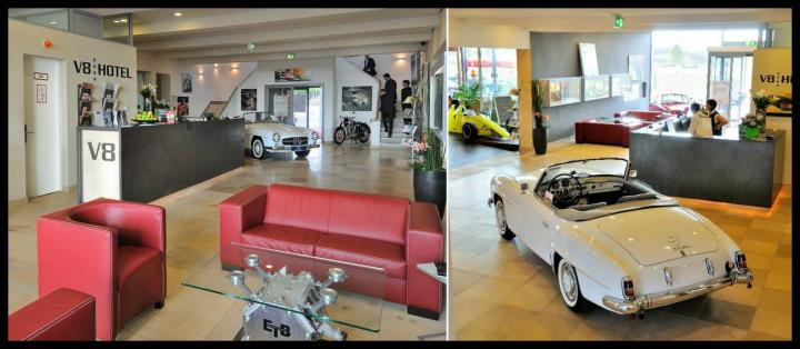 Hotel V8**** je jedným z tematických hotelov, ktorý je zaujímavý svojím interiérovým dizajnom. Ulahodí milovníkom áut, či už moderných alebo klasických veteránov.
