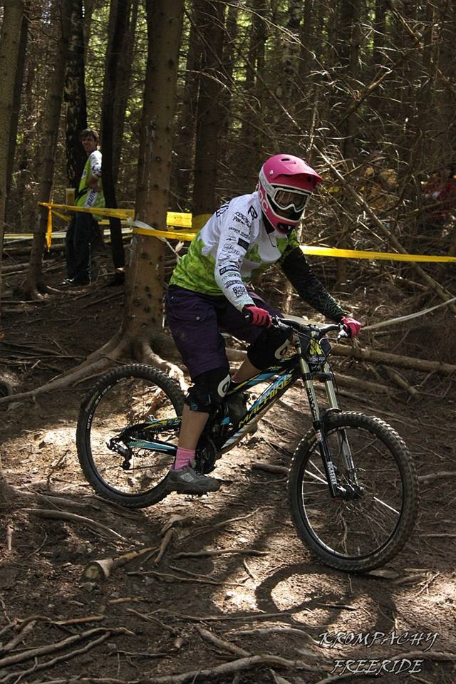 “Keď som v 15tich rokoch vyrástla zo starého bicykla, začala som sa obzerať po niečom novom. Mám veľa kamarátov, ktorí jazdili dirty. Zaujalo ma to a doma som našich ukecala, aby mi kúpili nový bicykel. Dostala som svoje prvé HT, ktoré som dva roky splácala. To mi však časom nestačilo a kúpila som si svoje prvé fullko. Zo začiatku to nebolo nič ľahké a dosť som sa bála. Často som sa zasekla na jednom mieste a nevedela som sa pohnúť. Spoznala som však ďalších bikerov, ktorí mi veľmi pomohli a potiahli ma.”