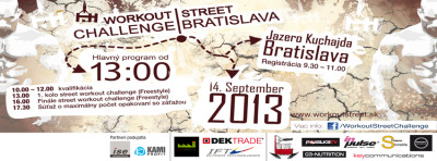 Areál bratislavského jazera Kuchajda privíta v sobotu 14.9. 2013 medzinárodné podujatie pod názvom BRATISLAVA WORKOUT / STREET CHALLENGE 2013, na ktorom si svoje sily zmerajú súťažiaci zo Slovenska, Maďarska a Českej republiky. Cieľom podujatia je snaha zviditeľniť street workout, ktorý je vzhľadom na svoju finančnú nenáročnosť čoraz populárnejší.