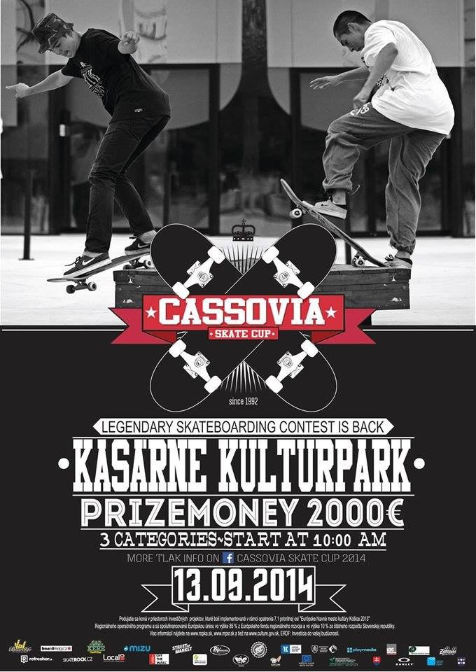 Skateboarding do ulíc Košíc neodmysliteľne patrí, dôkazom toho je aj pripravovaná akcia Cassovia Skate Cup 2014. Akcia sa bude konať v KULTURPARKU, 13. septembra. Súťažiť sa bude v troch kategóriách a veľkým lákadlom pre jazdcov je aj PRIZEMONEY v hodnote 2000eur.