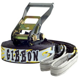 Z rôznych setov Gibbon Slacklines je na spomínaný spôsob slackline-ingu najvhodnejší Gibbon Jibline. Popruh dlhý 15 metrov poskytuje dostatočný priestor na zvládnutie všetkých spomínaných trikov.