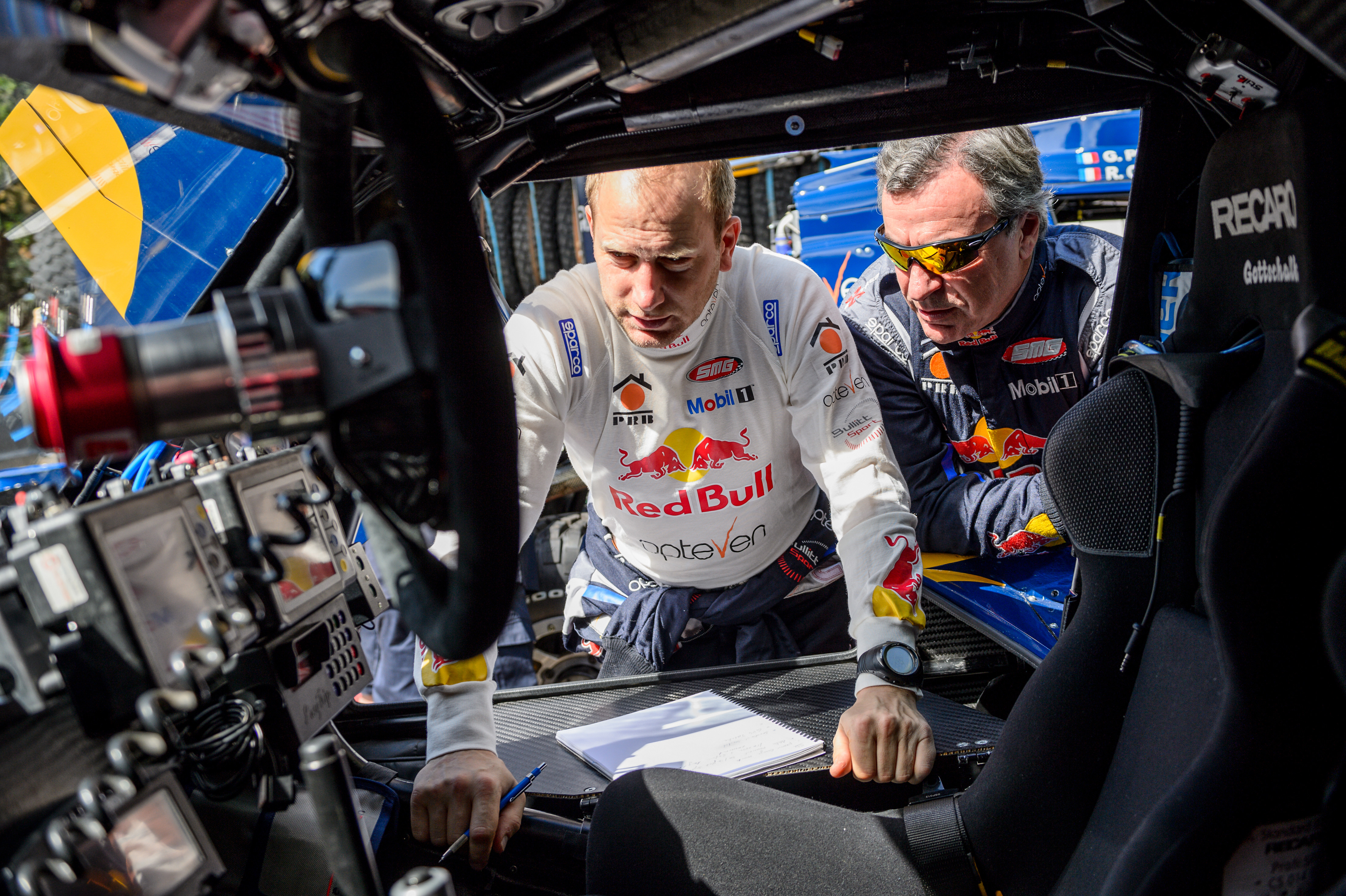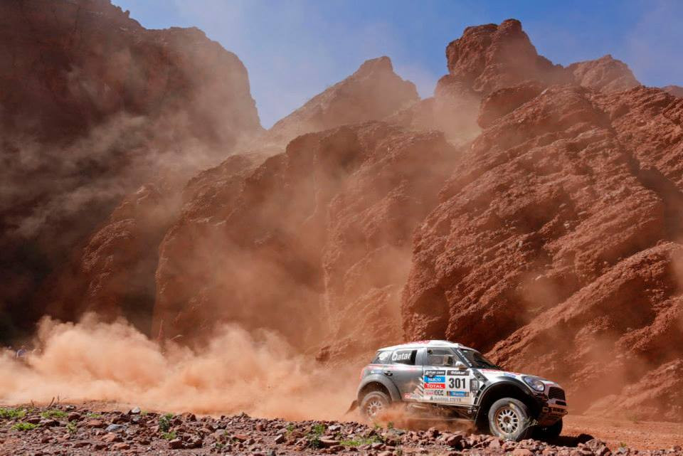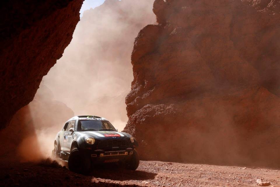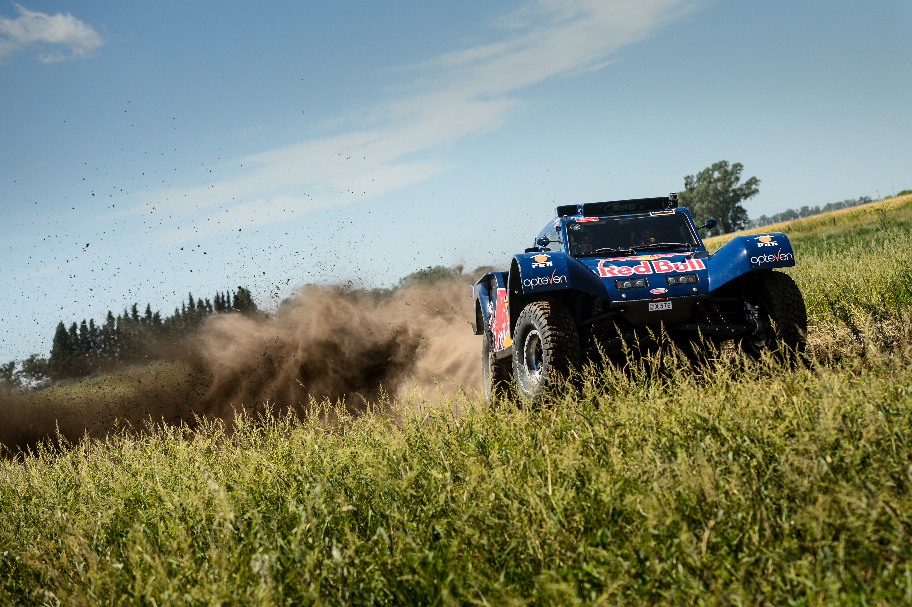 Autá ovládli jazdci na MINI. Prvý je ROMA, druhý TERRANOVA a tretí PETERHANSEL. Na foto redbull bugina SMG a Carlos Sainz.