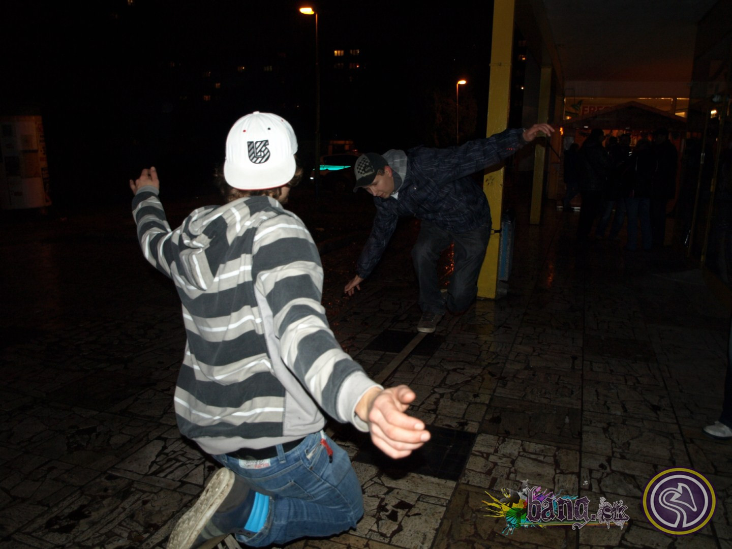 Aj napriek nie veľmi priaznivému počasiu cez týždeň sa nám v piatok vyjasnilo aspoň na pár hodín a akcia EXTREME sports in EXTREME weather sa konala v plánovanom čase. Znovu sme si vonku vybehli na slacky, freeline, frisbee... Tentoraz sme sa stretli v parku OC Erika na Terase v Košiciach. Akciu znovu prišla podporiť skupinka mladých chlapcov, náruživí slacklinery, mnoho ďalších akčných ľudí a svojou účasťou nás potešili aj chlapci zo skupiny NH6. Keďže počasie nesklamalo a začalo pršať zvyšok energie si účastníci vybili poriadnym tanečným nákladom.