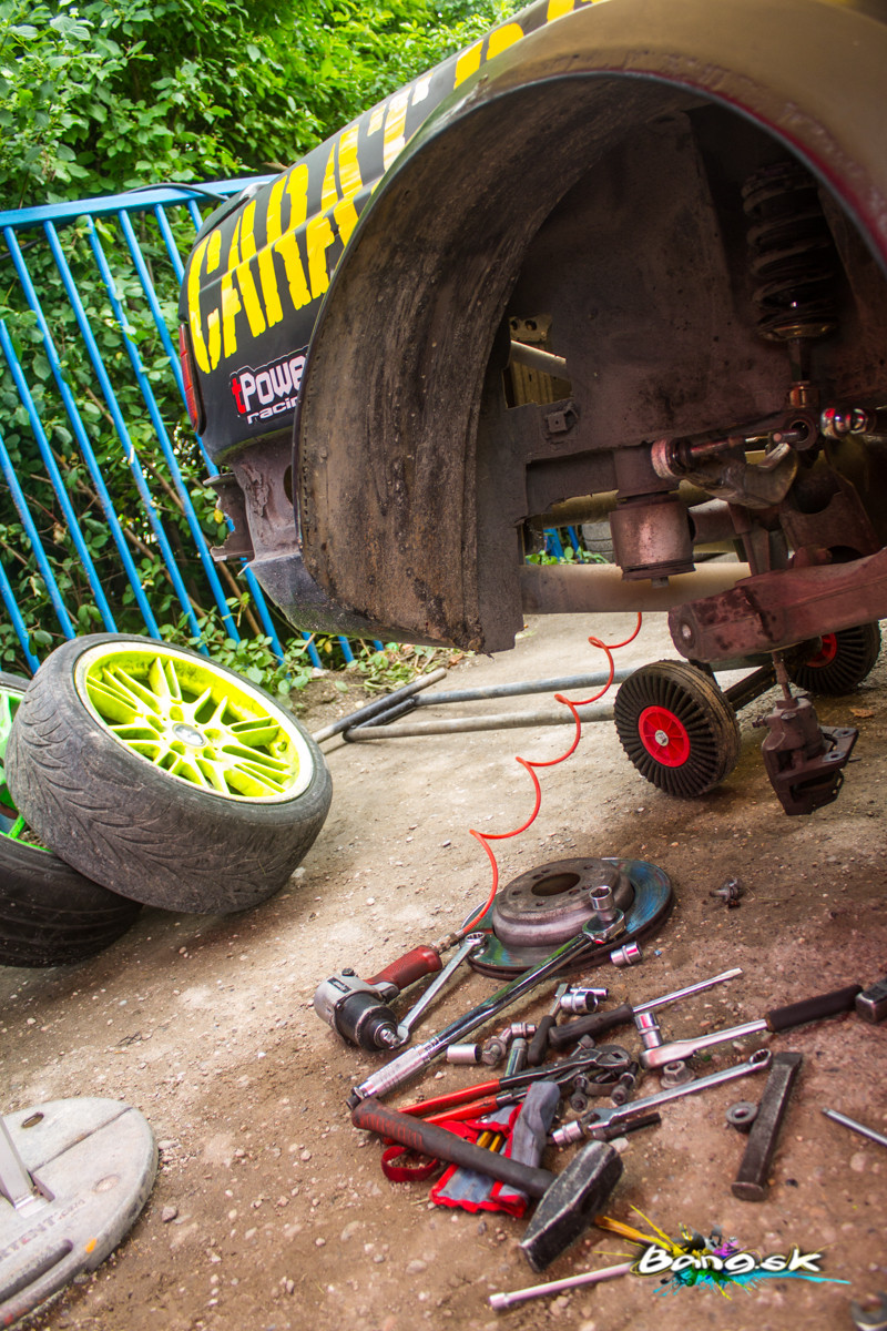 Nerovnosť trate spôsobila veľké problémy najmä jeho zníženému a rozšírenému BMW e30 V8 PICKUP, ktoré dávalo neskutočné uhly a kopec dymu.