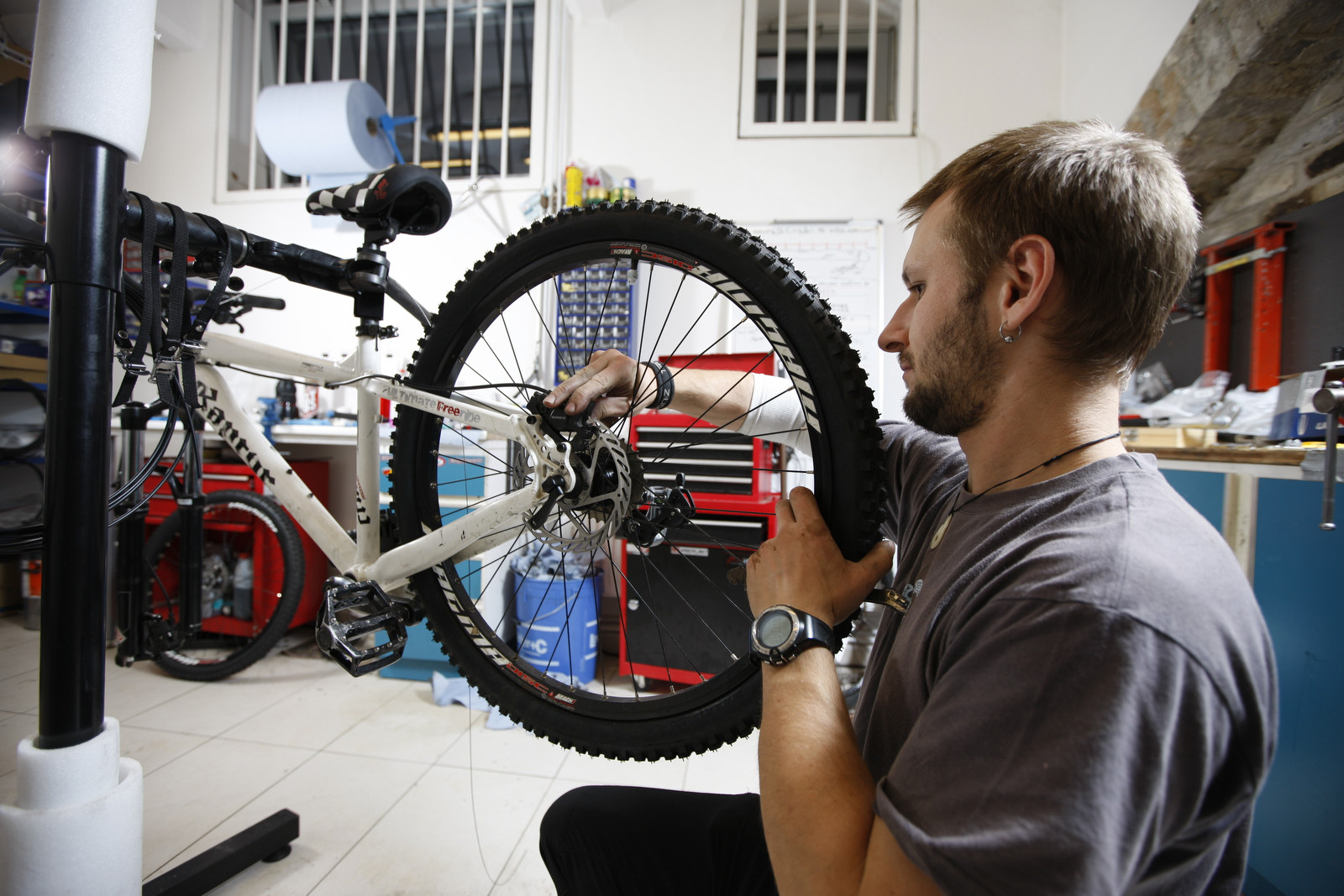 Teraz, hlavne v sezóne, je to dosť ťažké, byť všade a všetko stíhať. Zabezpečujeme servis pre Bajkulu v Bratislave. Tam máme vlastne dielňu, kde nám môžu zákazníci priniesť vidlice, tlmiče aj celé bicykle. Chodíme na Slovenský pohár v zjazde, takže ak sa niekto niečo potrebuje opýtať, sme k dispozícii. Taktiež fungujeme aj online. Telefonicky je to trošku ťažšie, hlavne keď je veľa práce a nie všetko sa vždy dá urobiť hneď. Najlepšie teda je napísať otázky mailom.