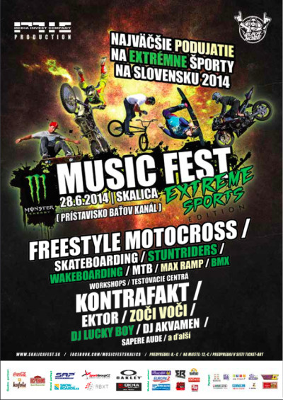 Koncom júna, konkrétne 28.6.2014 sa uskutoční najväčšie podujatie zamerané na extrémne športy a to na Baťovom kanále v Skalici. Brány Music Festu sa otvoria od 13:00hod.!