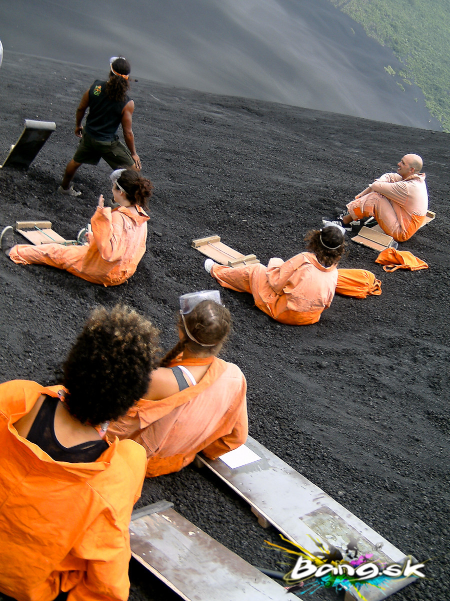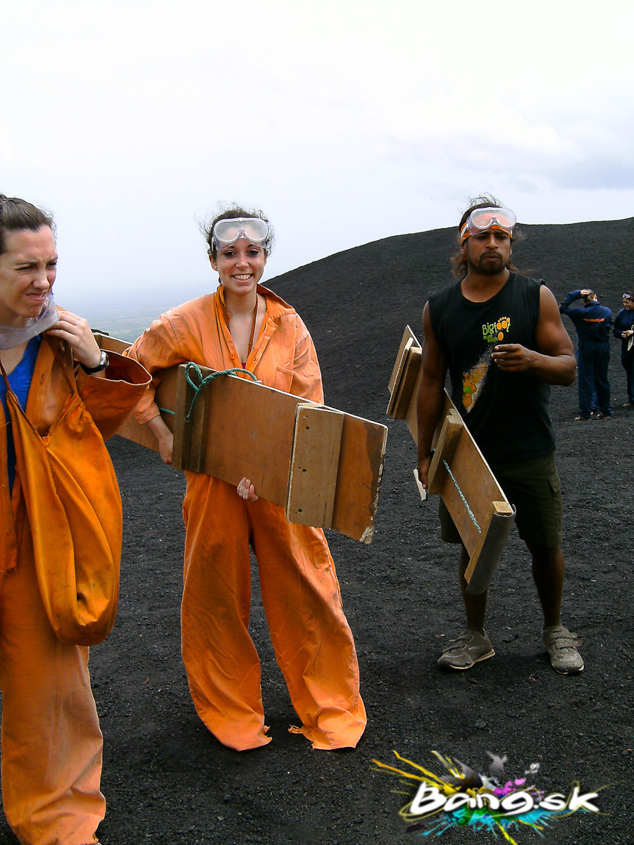A čo potom? Nasadiť okuliare, oranžový telletubie oblek, aby na vás vulkán nezanechal jazvy, a veľa odvahy. Keď vás ale inštruktor sotí dole, necítite už nič, len adrenalín a túžbu nabrať čo najvyššiu rýchlosť v prípade, že vulkán fakt vybuchne. Brzdiť sa aj tak neoplatí, keďže vám to do tváre vrhá lávové kamene. Pravidlo je, že najrýchlejší je najmenej špinavý a dostane Nicaragujské pivo zadarmo na ceste späť. So go for it, babe!